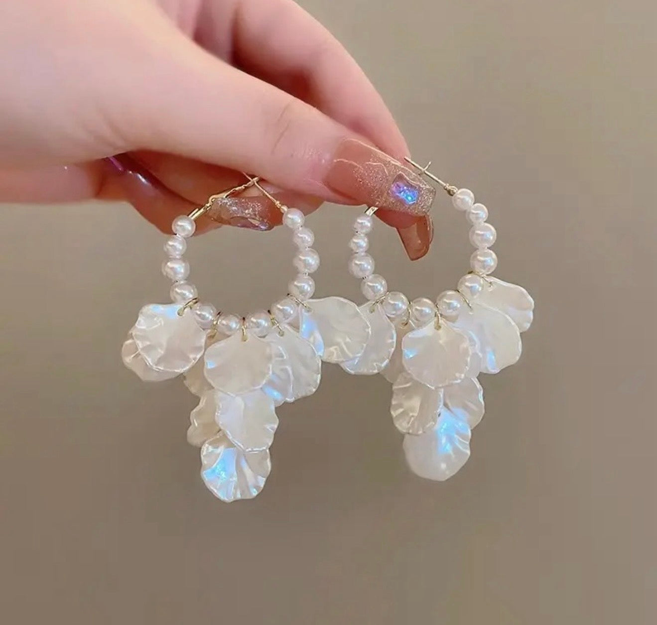 Elegance meets charm π« β these hoops are adorned with delicate pearl beads and iridescent petal drops, perfect for adding a dreamy touch to any outfit. Whether itβs a brunch, wedding, or a night out, these beauties will make you shine effortlessly π€β¨