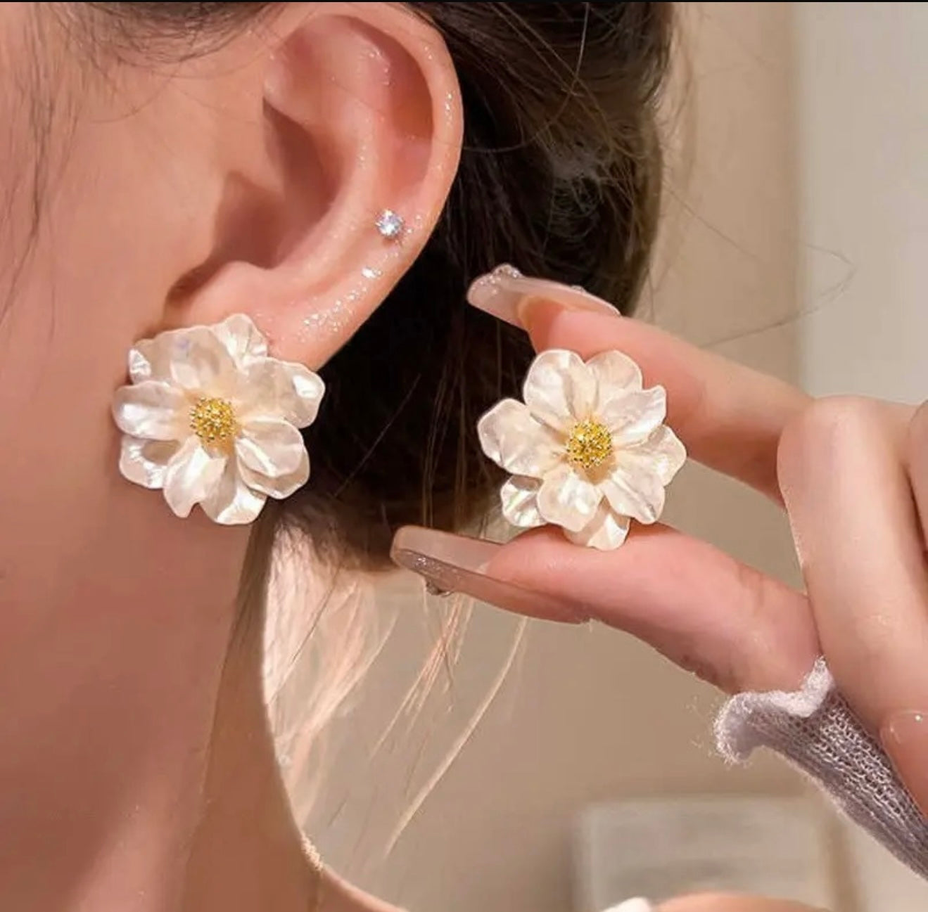 Bring a touch of nature’s grace to your style ✨ These pearl-finish floral studs with golden centers are the perfect mix of delicate charm and timeless beauty. Fresh, feminine, and effortlessly chic 🤍