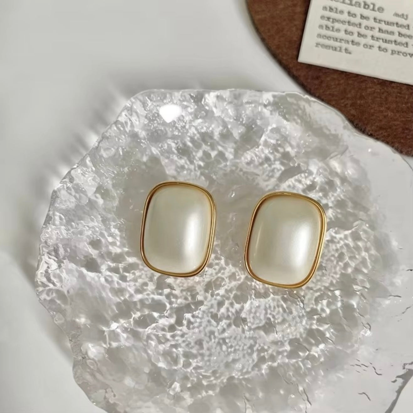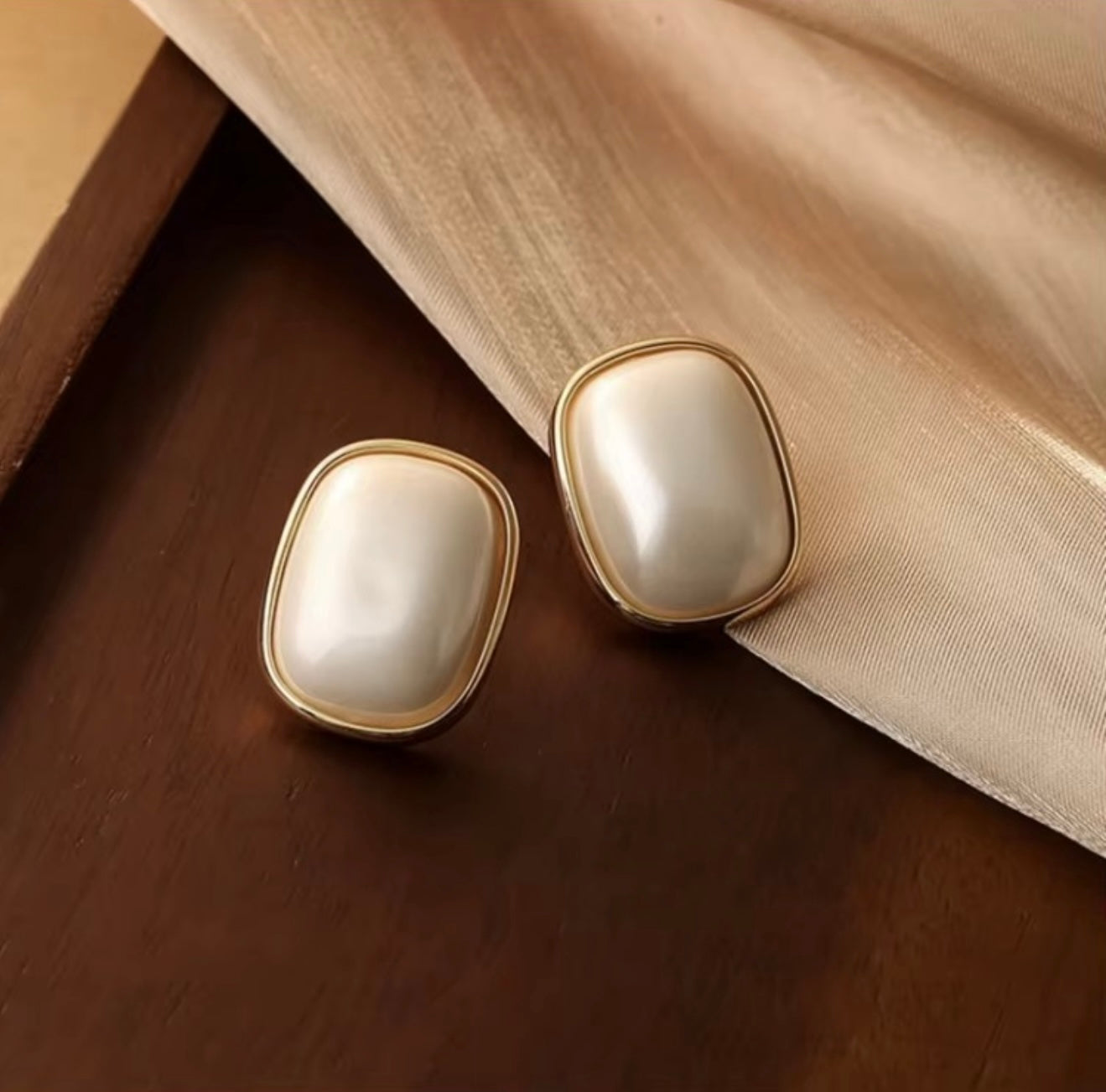 Elevate your style with these timeless pearl stud earrings, featuring a lustrous, creamy pearl set within a sleek, golden frame. Perfect for adding a touch of sophisticated charm to any ensemble, from office wear to evening attire.