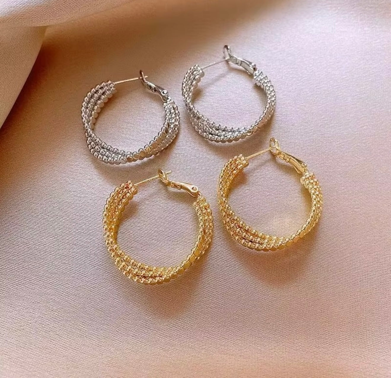Classic hoops, reimagined! Our Gleam Loop earrings feature a trio-texture beaded design that catches light from every angle — adding that extra sparkle to your everyday glam. Available in gold and silver finishes, these hoops are lightweight, bold, and effortlessly chic.